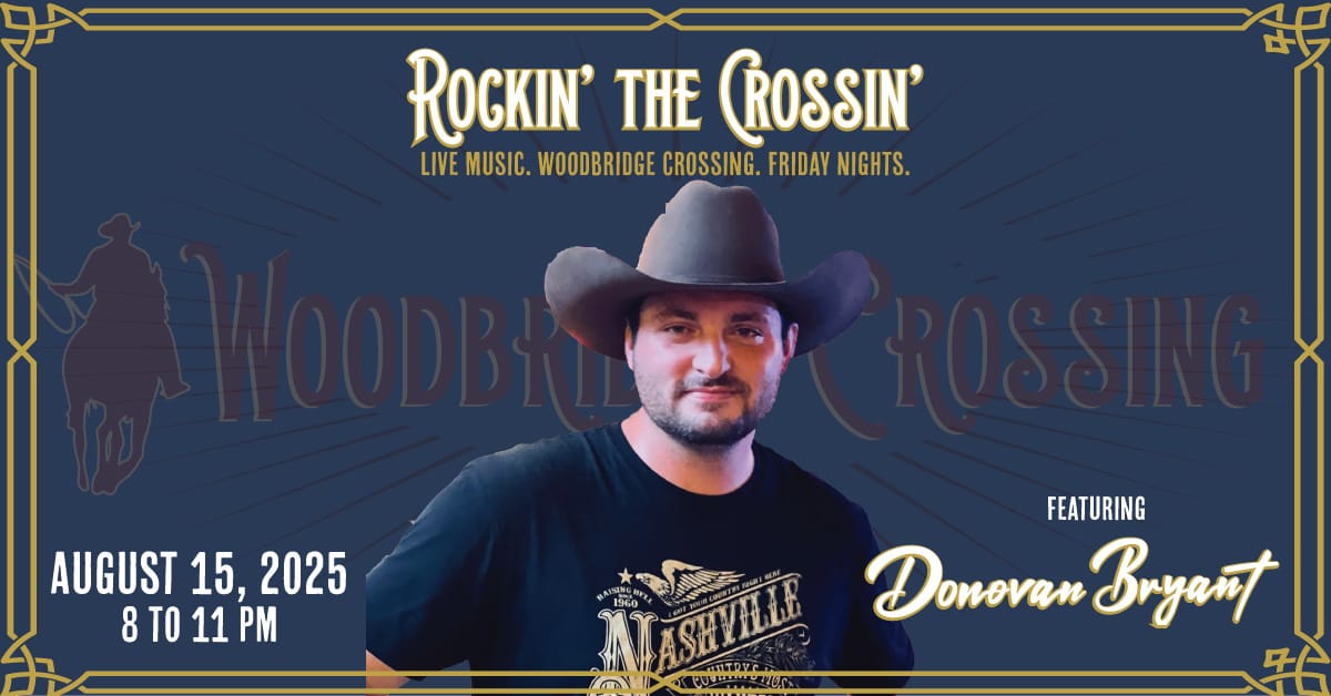 Kick off your weekend with the smooth, soulful sounds of Donovan Bryant, live inside Woodbridge Crossing. From classic country to heartfelt originals, Donovan’s voice fills the room with the kind of energy that pairs perfectly with a great steak and a glass of something strong.